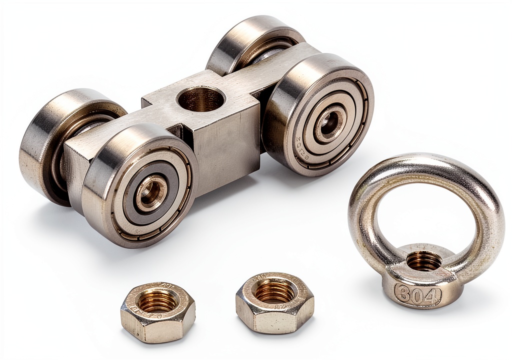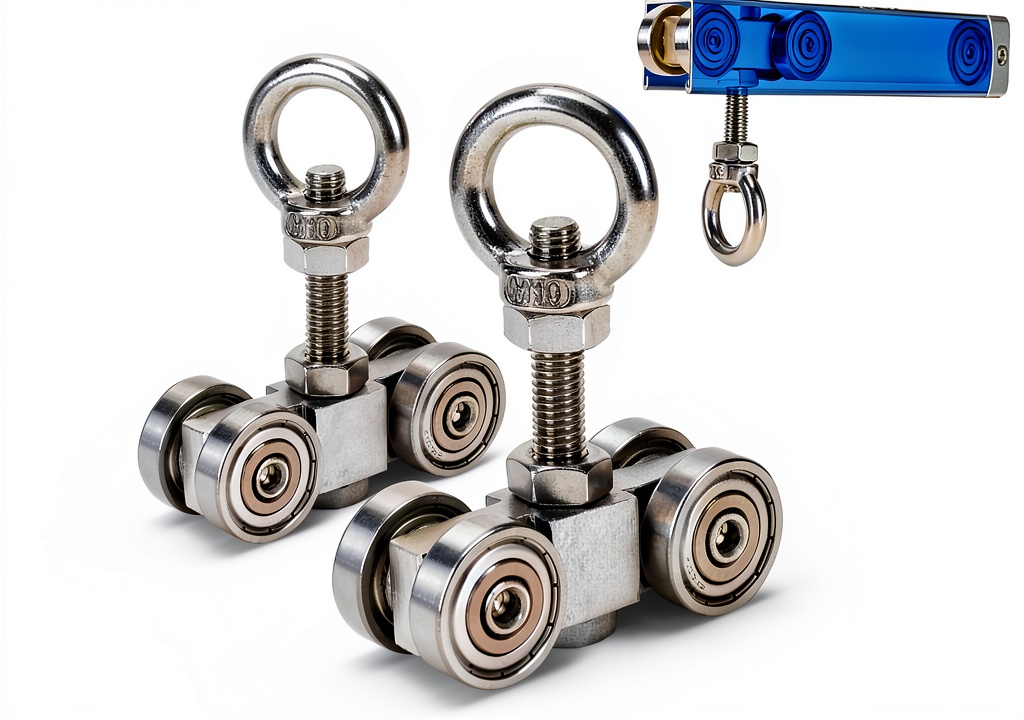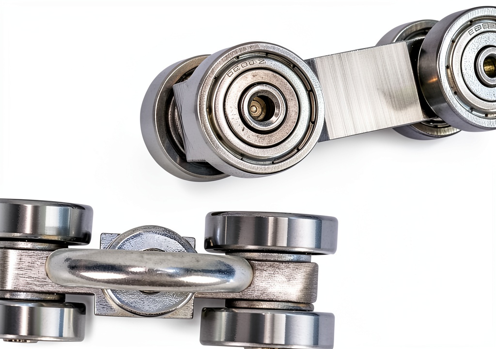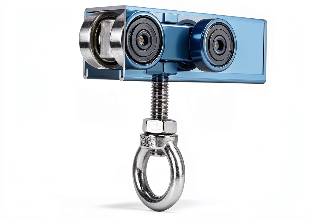 • Four-bearing trolley assembly with welded bearings and pin shafts for enhanced stability
